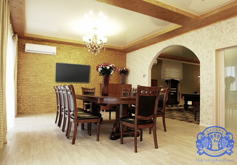 Для настоящих любителей «отдыха после отдыха» предусмотрена не только возможность посидеть компанией за накрытым столом, посмотреть телевизор или срочно подключиться к Интернет, но и поиграть в бильярд.